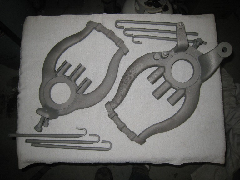 The cleaning of parts has started......priming comes next. BUT before you spray anything a little bit more work needs done to keep primer and/or paint where it should be and not in areas which are moving or have a tight fit. On a printing press there are many areas like this and almost every piece will have some sort of masking required. Primer can add about 3-5mils, and paint will be anywhere from 5-50mils depending on what type you use. Detailed masking is required on printing press parts!!! Here's a good picture of some items I have masked up and now ready for primer.