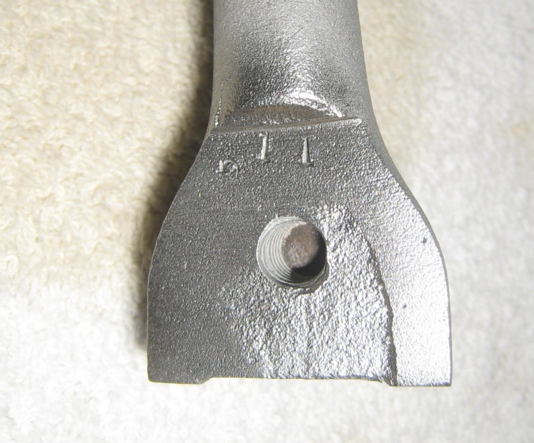 The fun of restoring items like this is traveling back in time and figuring out how stuff was done .or why stuff was done a certain way. Its always fun learning!! The following pictures on this page show something I found but have yet to figure out why Golding did this? The pictures that follow show cast iron pieces that were stamped with two digit numbers in them. These are stamped numbers, not number that were cast into the parts. All of them are found on a machined surface. Most of the numbers on the main press are #11, and most on the auto inker system are #16. But there is a #10 on the platen handle. This photo shows the throw off sliders under the platen, one is stamped with B11