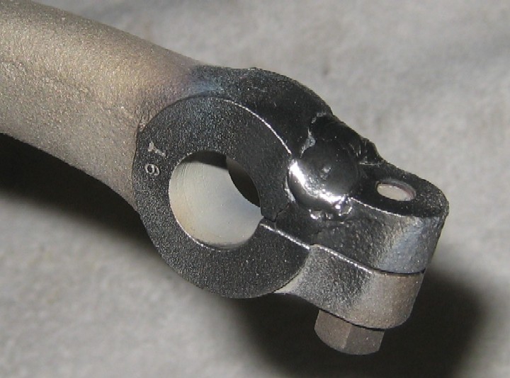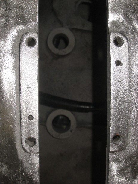 .the other one is not stamped. Here's the bottom of the two harps that hold the rollers. Both clearly have the #11 stamped in them. Another thing to note is these are individual number stamps. To make the number #11 you took the number one and hit it once, moved it over a bit and hit it again. How you can tell this is because each #11 looks a bit different than the other one. The numbers arent lined up or the spacing in-between is different. This #11 is found on the brayer table where it mounts to the press. This #16 is from the auto inker and is the item the inker roller fastens into. Also note the welding job on this piece. The tab was broke off and I had to weld it back on. This process was explained on an eariler page. This is nickel rod welding cast iron. Two more #11 on one piece. This is the crank shaft and power shaft bearing end holder. Both machined surfaces are stamped with a #11 on it. The item pictured above bolts into this space on the side of the main press body. Again there is a pair of #11 almost matching the ones above.....and again only on the machined surface. |
